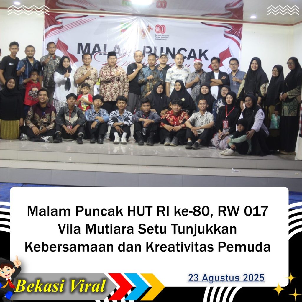 Bekasi — Semangat kemerdekaan Republik Indonesia ke-80 benar-benar terasa di lingkungan RW 017 Vila Mutiara Setu, Desa Cijengkol, Kecamatan Setu, Kabupaten Bekasi. Ratusan warga tumpah ruah di halaman Sekretariat RW untuk meramaikan Malam Puncak Gebyar HUT RI ke-80, Sabtu (23/8/2025) malam, yang berlangsung penuh kegembiraan, kekompakan, dan kreativitas. Acara yang dihadiri sekitar 400 warga dari […]