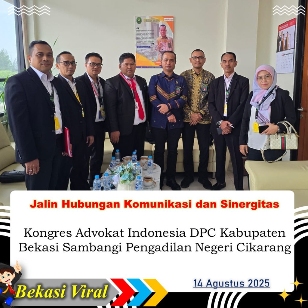 Cikarang, 14 Agustus 2025 — Dalam rangka mempererat hubungan kelembagaan dan membangun sinergi antarinstansi penegak hukum, Dewan Pimpinan Cabang Kongres Advokat Indonesia (DPC KAI) Kabupaten Bekasi melakukan audiensi resmi dengan Pengadilan Negeri (PN) Cikarang, Rabu (14/8/2025). Audiensi ini merupakan tindak lanjut dari jawaban surat permohonan resmi yang diajukan DPC KAI Kabupaten Bekasi. Pertemuan digelar dengan […]